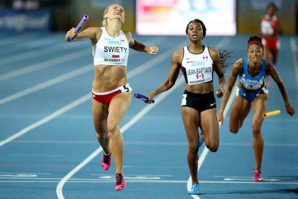 04 MAY 2015 Action from the women's 4x100m at the IAAF/BTC World Relays Bahamas 2015