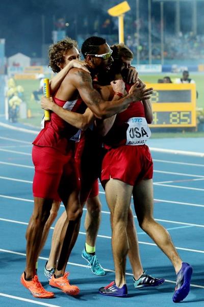 03 MAY 2015 USA, winners of the men's 4x800m at the IAAF/BTC World Relays, Bahamas 2015
