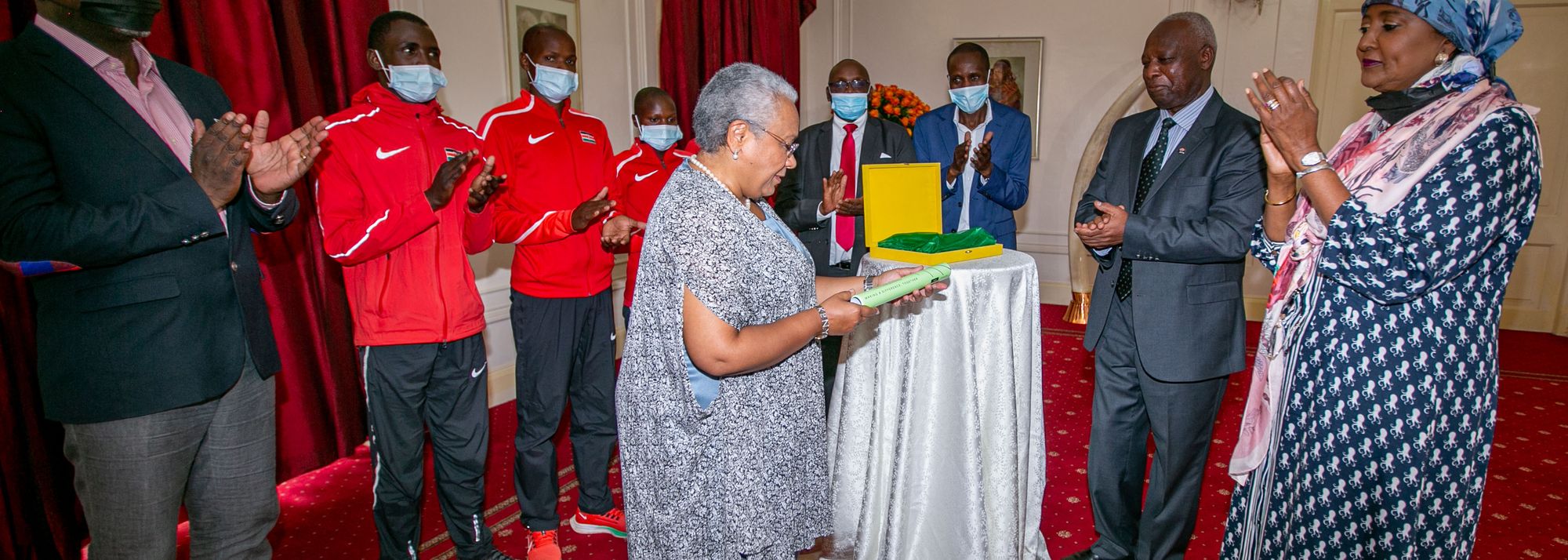 Kenyatta spoke at State House, Nairobi, where she received a replica relay baton from Athletics Kenya President Jackson Tuwei for her stewardship as the patron of last year's World Athletics U20 Championships.