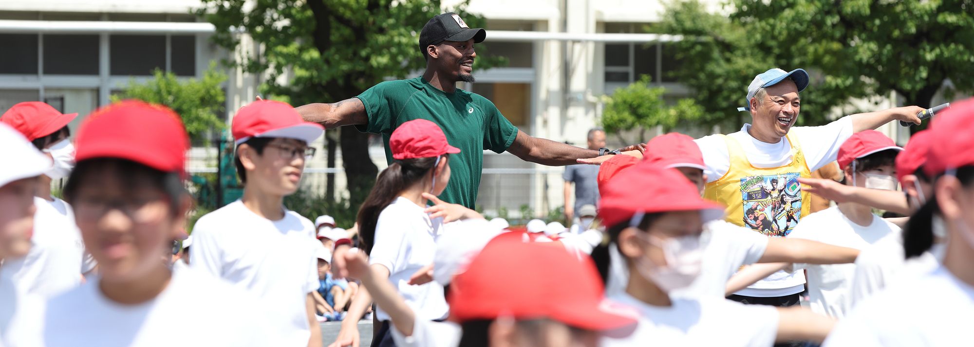 Fred Kerley during a visit to the Otsuna Elementary School in Yokohama (© JAAF / Manabu Takahashi)