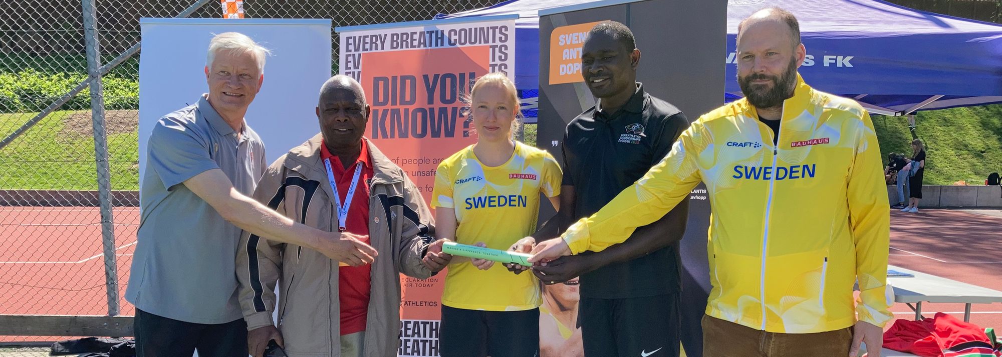 To commemorate the occasion, Storåkers was handed a relay baton made of recycled aluminium and produced by World Athletics supplier Mondo from Jackson Tuwei, President of the Athletics Kenya during a ceremonial relay exchange. Athletics Kenya was the first Member Federation to sign on the pledge, with the federations of Oman and Serbia following suit.