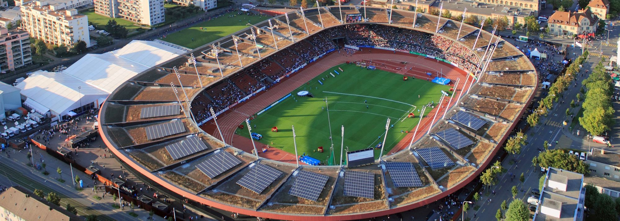 Waste reduction efforts are helped by the Letzigrund Stadium’s goal of being waste-free. All waste at the venue is recycled, including food waste, which is processed into green electricity, and frying oil which is processed into bio-diesel which fuels the food and beverage supplier’s fleet. The venue itself also helps with its energy footprint. Letzigrund is powered entirely by renewable energy sources which include rooftop solar panels and wood pellet heating.