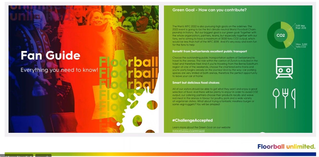 Organisers of the 2022 World Floorball Championships, which were held in Zurich, set a target of cutting in half the CO2 emissions per person from the previous edition of the championships, held in Prague in 2018. It was an ambitious target, one they met. A full report is here.