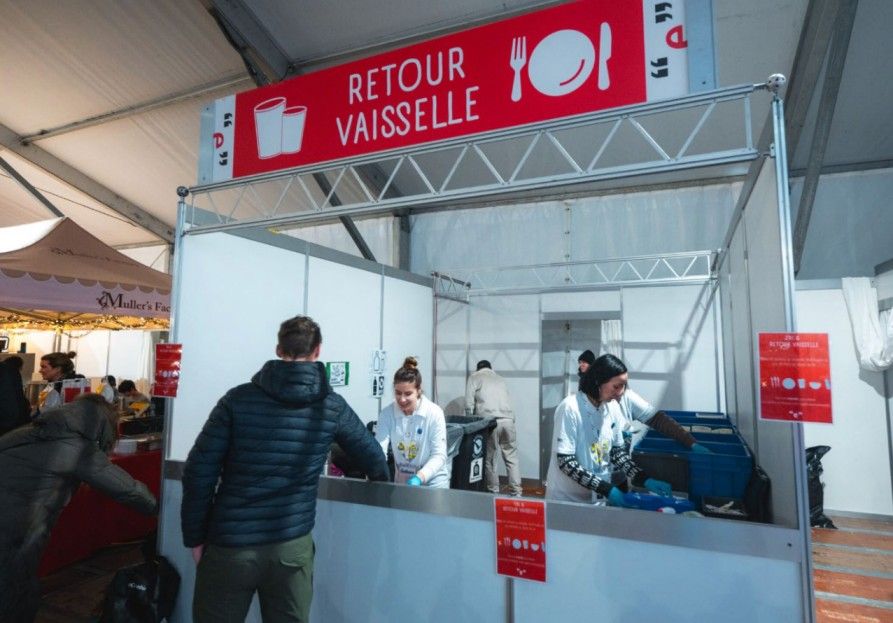 At the 2024 edition of the Course de l'Escalade, Switzerland’s most popular running race held in Geneva old town, a ‘Retour Vaisselle’ (or ‘Return Dishes’) scheme was implemented. Return stations were set up to wash and reuse plates, cutlery and cups at the event.