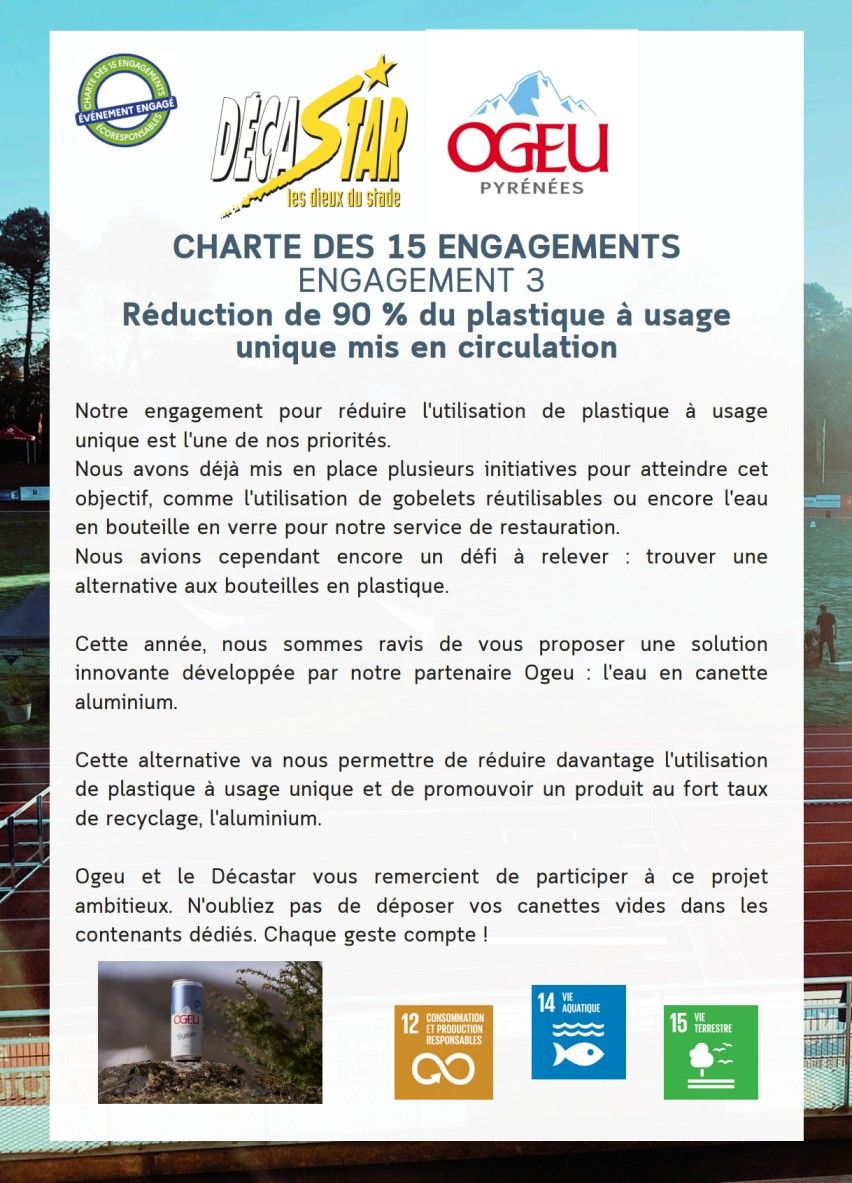 In December 2021, organiser of the annual Décastar competition, ADEM, decided to reinforce its commitment to sustainability by signing the charter of ‘15 eco-responsible commitments for sporting event organisers’, promoted by the Ministry of Sport in collaboration with WWF France. In 2024, ADEM encouraged each of the event’s partners, such as water company OGEU, to join them in working towards fulfilling 15 commitments based on the 17 United Nations Sustainable Development Goals.
