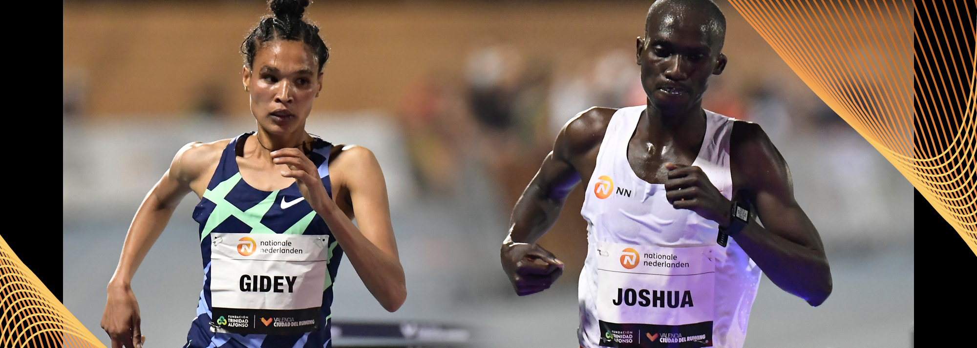Letesenbet Gidey and Joshua Cheptegei (© AFP / Getty)