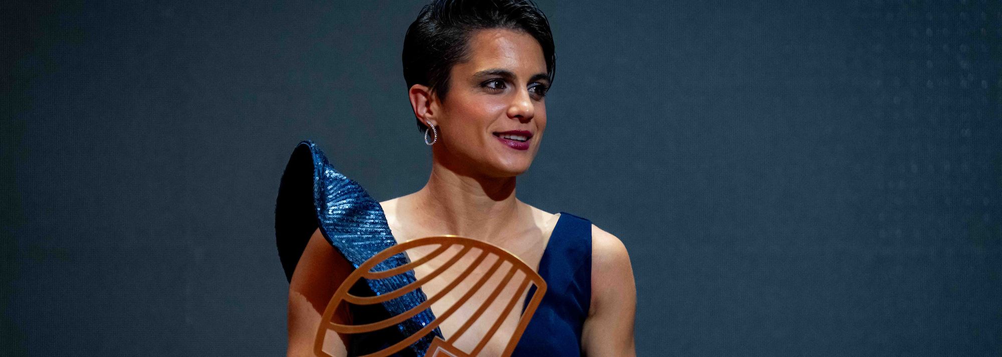 Maria Perez receives her trophy at the World Athletics Awards (© World Athletics Chiara Montesano)
