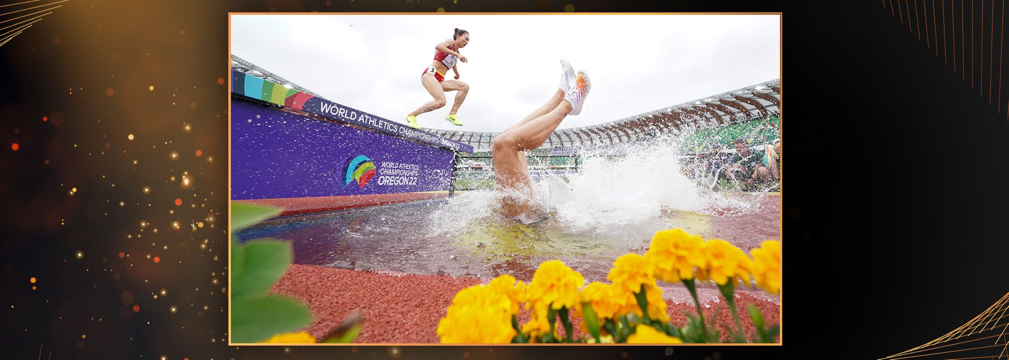 Martin Rickett’s shot of a fall at the water jump during the women's 3000m steeplechase at the World Athletics Championships Oregon22 has been selected as the World Athletics Photograph of the Year.
