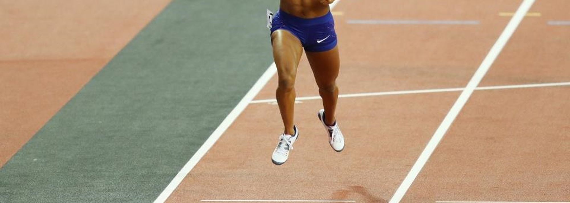 Kori Carter crosses the line in the 400m hurdles at the IAAF World Championships London 2017 (© Getty Images)