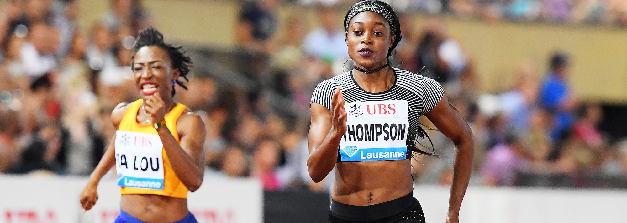 Elaine Thompson wins the 100m at the Diamond League meeting in Lausanne (© Gladys von der Laage)