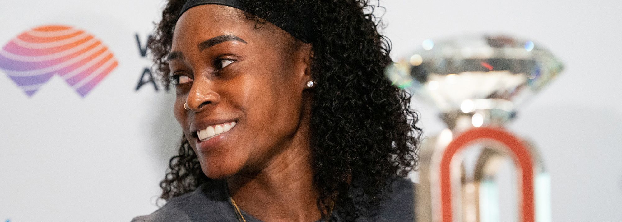 Elaine Thompson-Herah at the press conference in Lausanne (© Matt Quine)