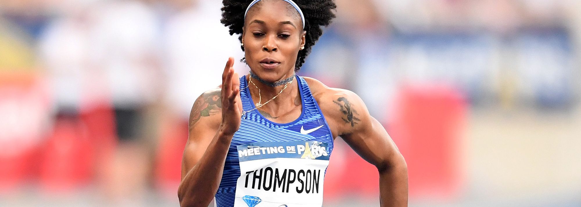 Elaine Thompson-Herah in action at the Diamond League meeting in Paris (© Gladys Chai von der Laage)