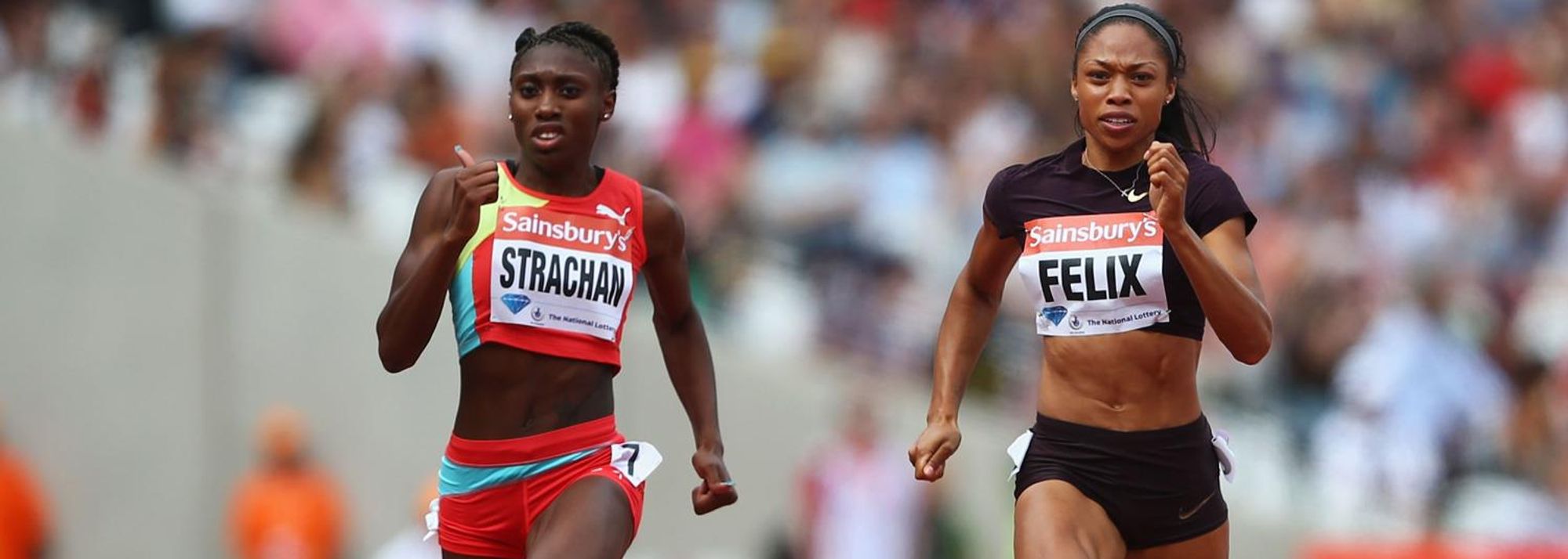 Allyson Felix and Anthonique Strachan in the 200m at the IAAF Diamond League meeting in London (© Getty Images)