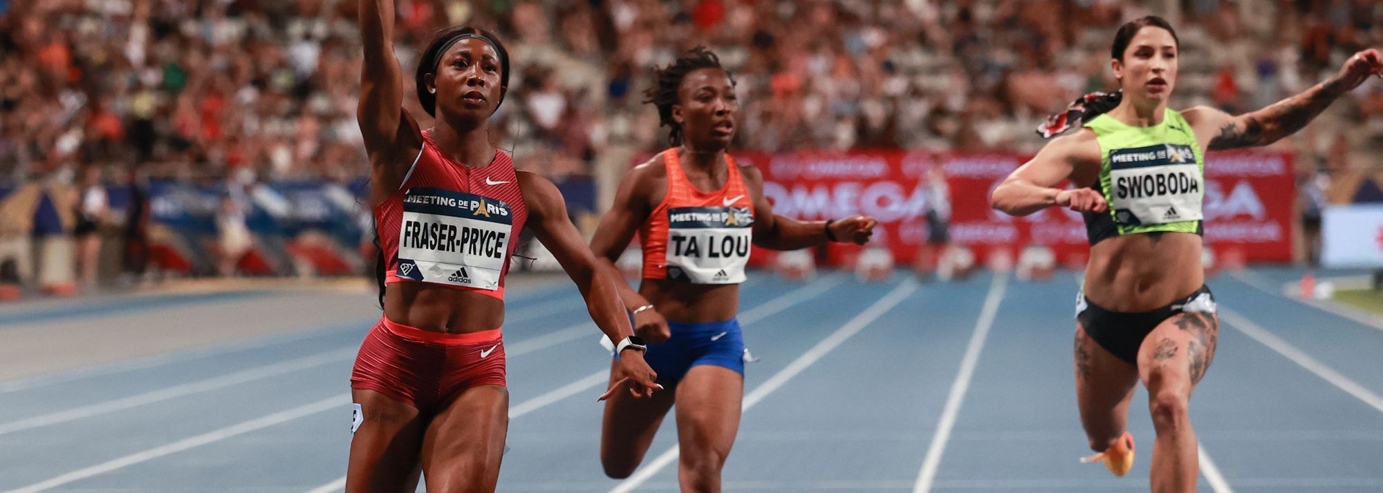 Shelly-Ann Fraser-Pryce and Ewa Swoboda race at the Wanda Diamond League meeting in Paris (© Chiara Montesano / Diamond League AG)