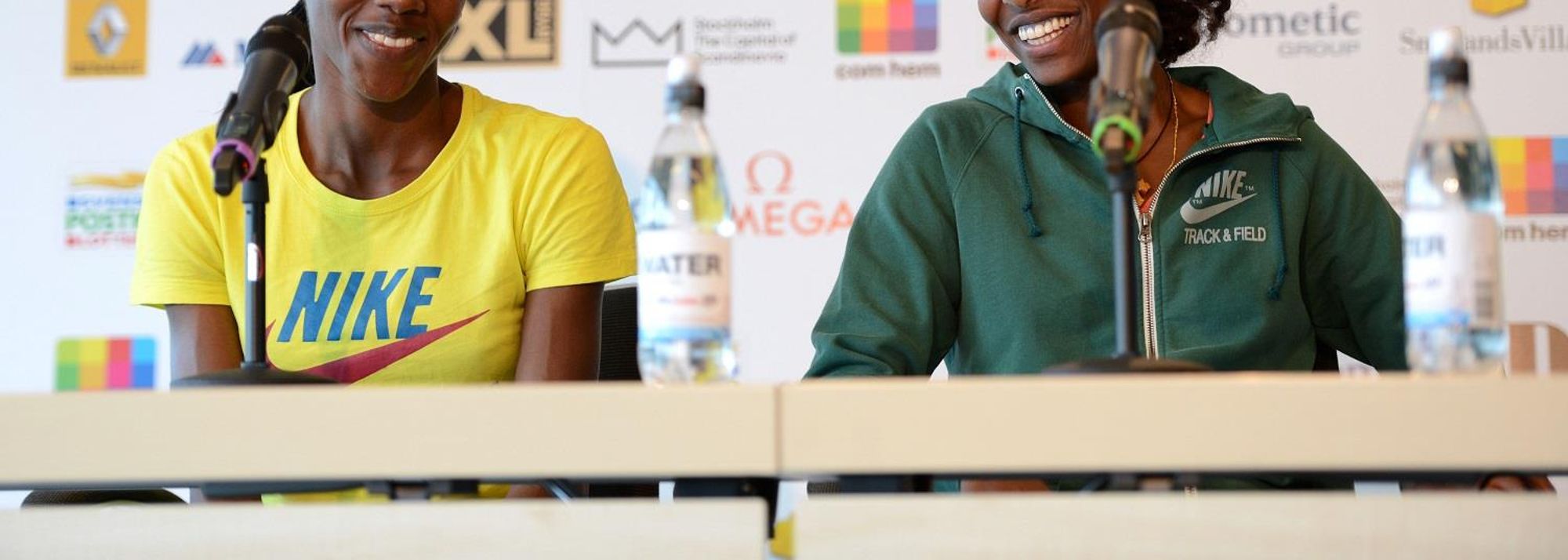 Eunice Sun and Abeba Aregawi at the pre-event press conference of the 2013 IAAF Diamond League meeting in Stockholm (© Anders and Hasse Sjogren)