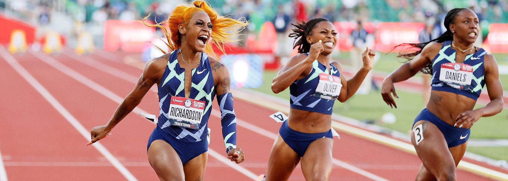 Sha'Carri Richardson wins the 100m at the US Olympic Trials (© Getty Images)