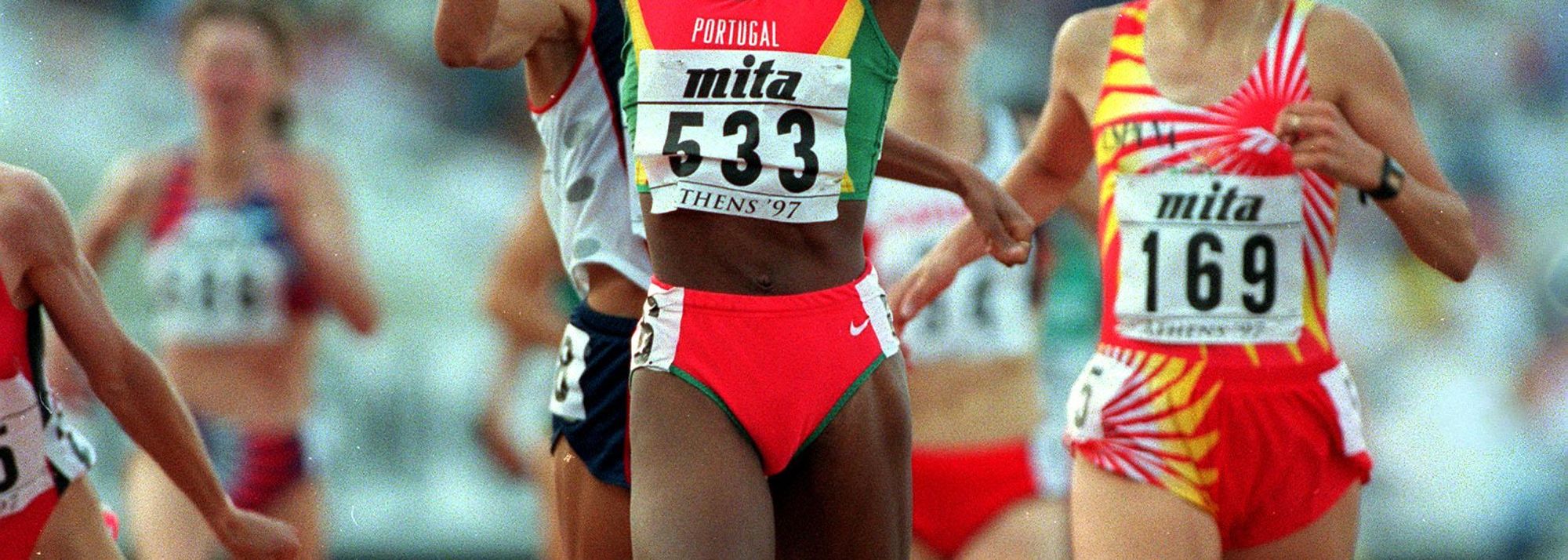 Portugal's Carla Sacramento winning the 1997 IAAF World Championships 1500m title (© Getty Images)