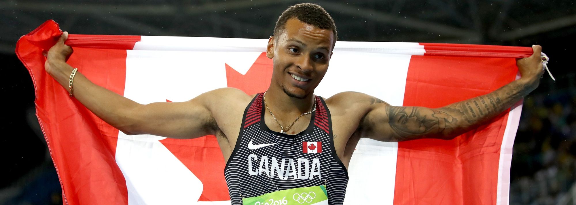 Andre De Grasse celebrates his 200m silver at the Rio 2016 Olympic Games (© Getty Images)