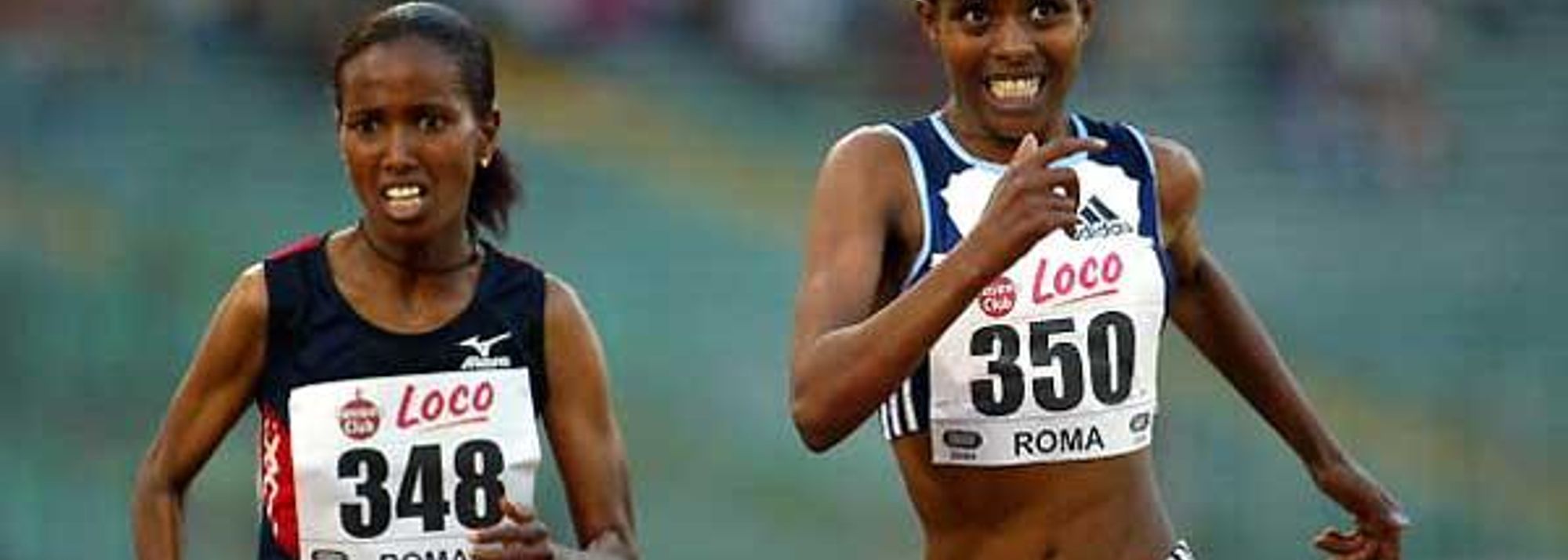 Ejegayehu Dibaba (r) wins in Rome ahead of Werknesh Kidane (© Getty Images)
