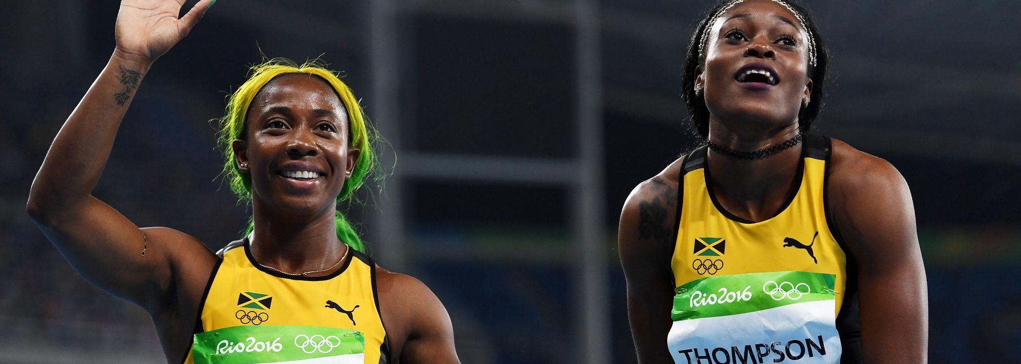 Shelly-Ann Fraser-Pryce and Elaine Thompson-Herah at the Rio 2016 Olympic Games (© Getty Images)