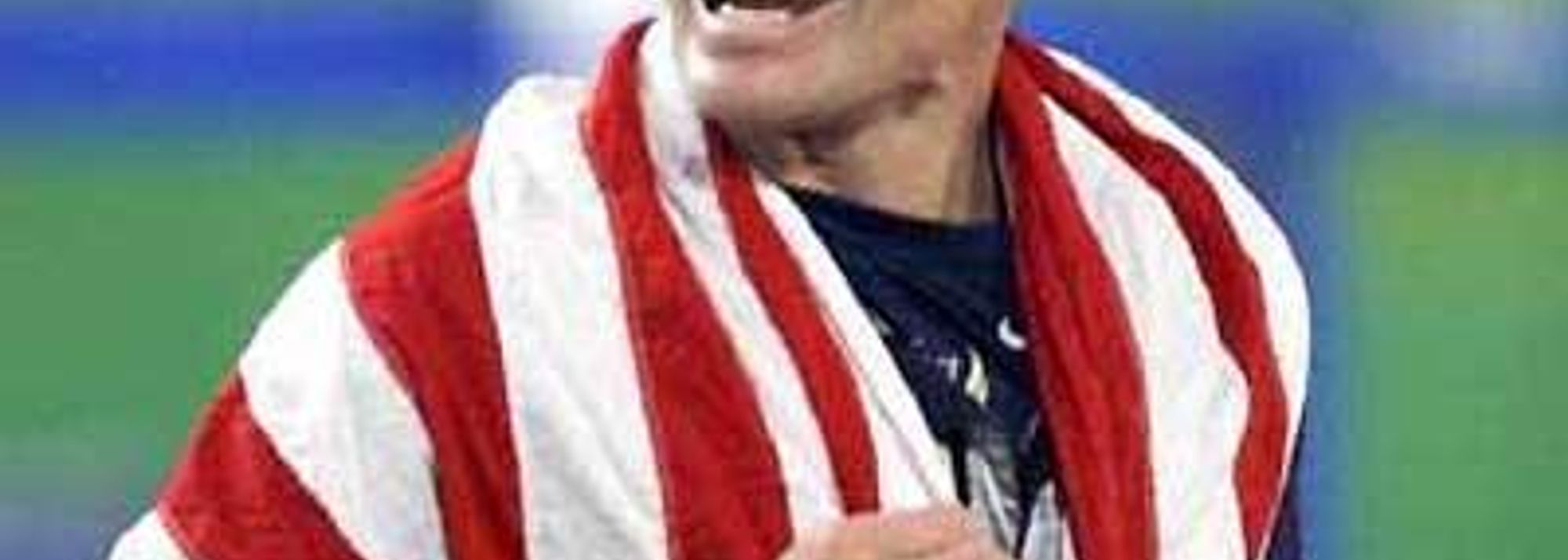 Nick Hysong (USA) celebrates in Sydney after his 2000 Olympic pole vault win (© Getty Images)