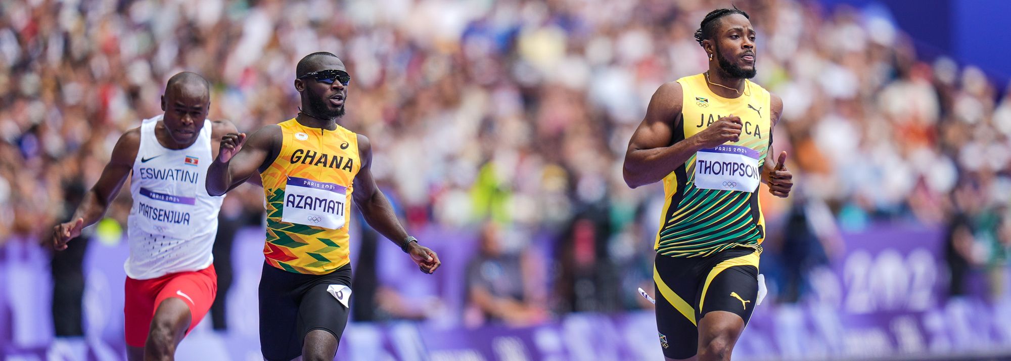 Kishane Thompson in the 100m heats at the Paris 2024 Olympic Games (© Dan Vernon)