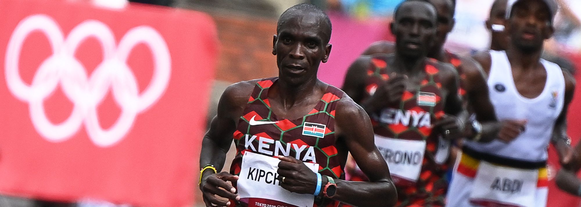Eliud Kipchoge in the marathon at the Tokyo Olympic Games (© AFP / Getty Images)