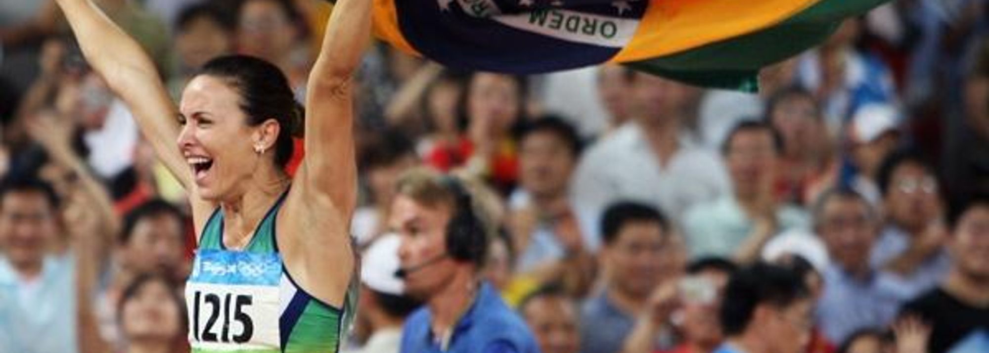 Maurren Higa Maggi of Brazil celebrates her Olympic long jump gold (© Getty Images)