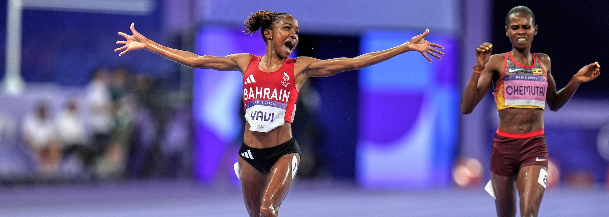 Winfred Yavi wins the 3000m steeplechase at the Paris 2024 Olympic Games (© Dan Vernon)