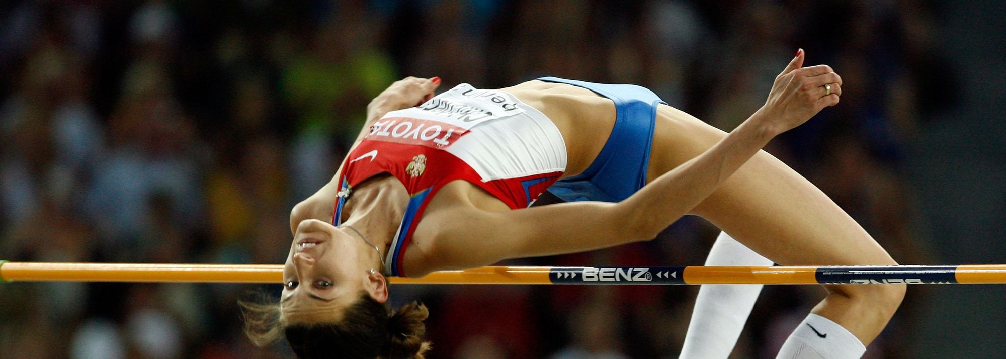 Russia Anna Chicherova clears 2.02m in the women's High Jump Final in Berlin (© Getty Images)