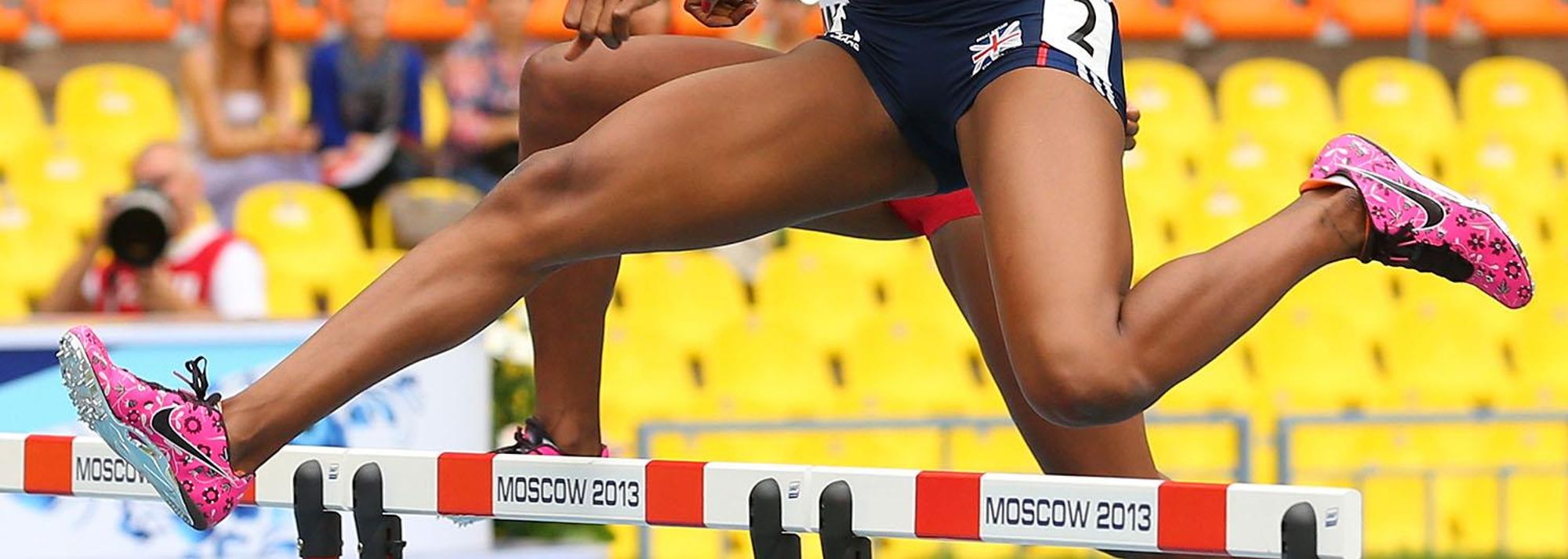 Perri Shakes Drayton in the womens 400m Hurdles at the IAAF World Championships Moscow 2013