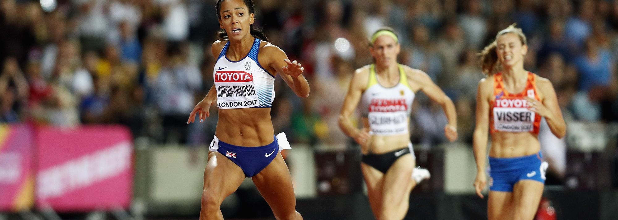 Katarina Johnson-Thompson in the heptathlon 200m at the IAAF World Championships London 2017 (© Getty Images)