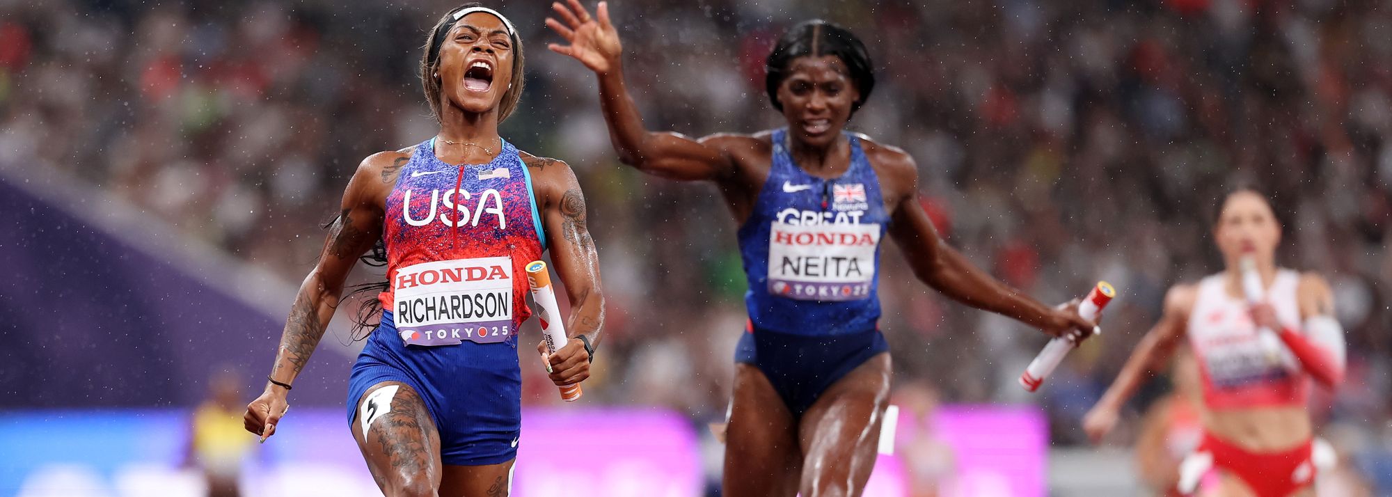 Sha'Carri Richardson anchors USA to 4x100m gold at World Athletics Championships Tokyo 25 (© Getty Images)