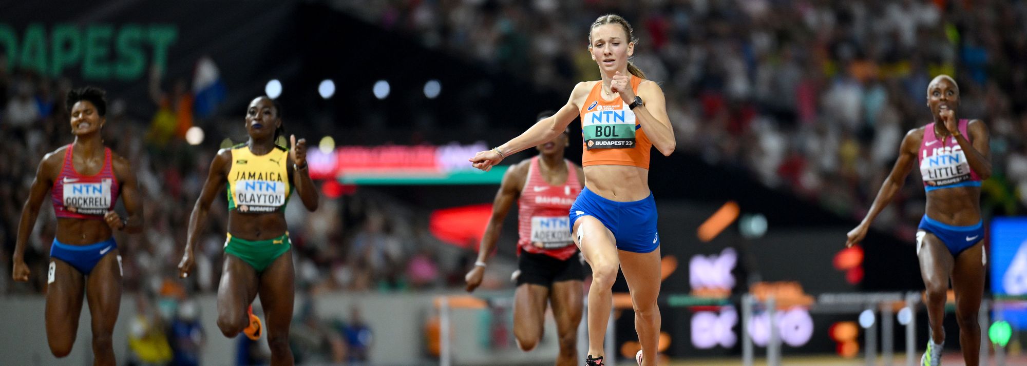Femke Bol wins the 400m hurdles at the World Athletics Championships Budapest 23 (© Getty Images)