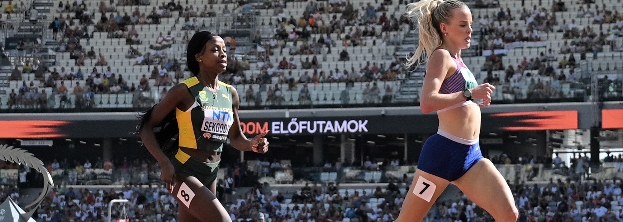 Keely Hodgkinson and Prudence Sekgodiso at the World Championships (© AFP / Getty Images)
