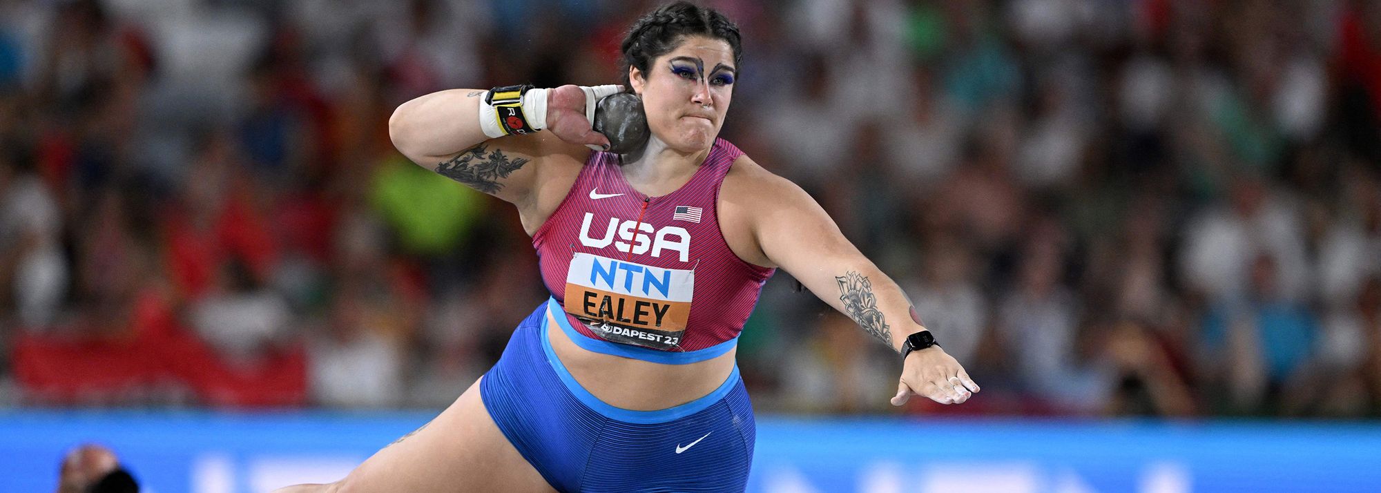 Shot put winner Chase Ealey at the World Athletics Championships Budapest 23 (© AFP / Getty Images)