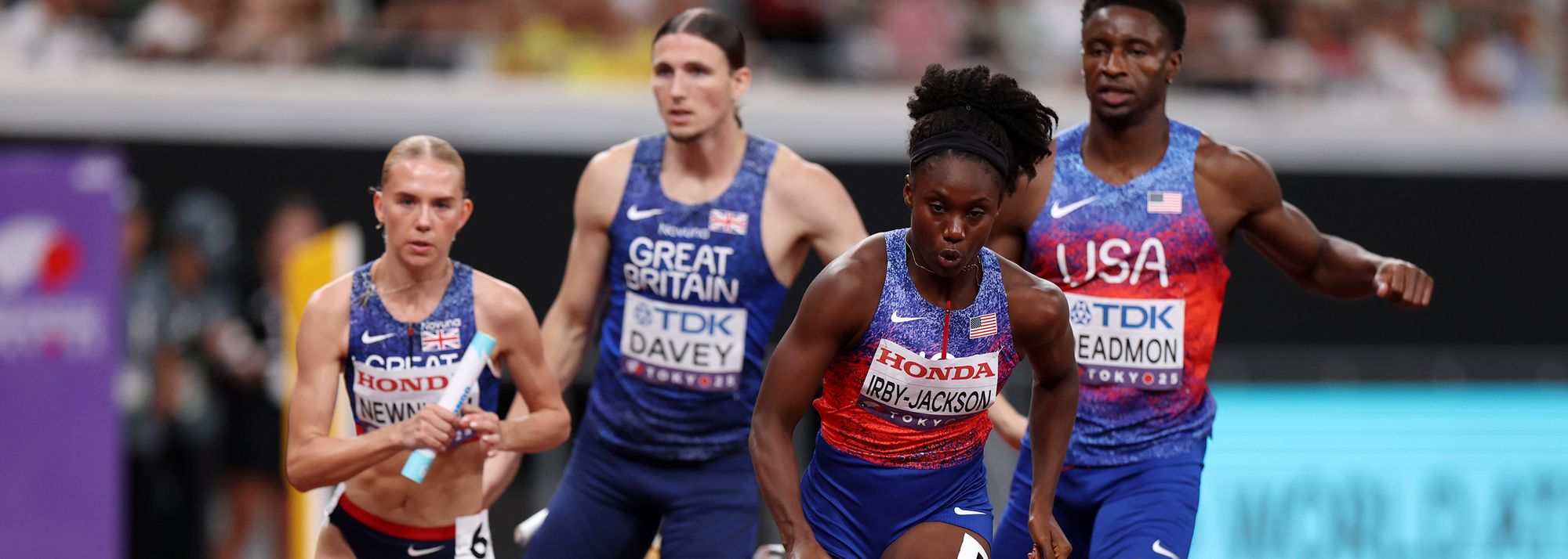 USA on the way to the mixed 4x400m world title in Tokyo (© Getty Images)