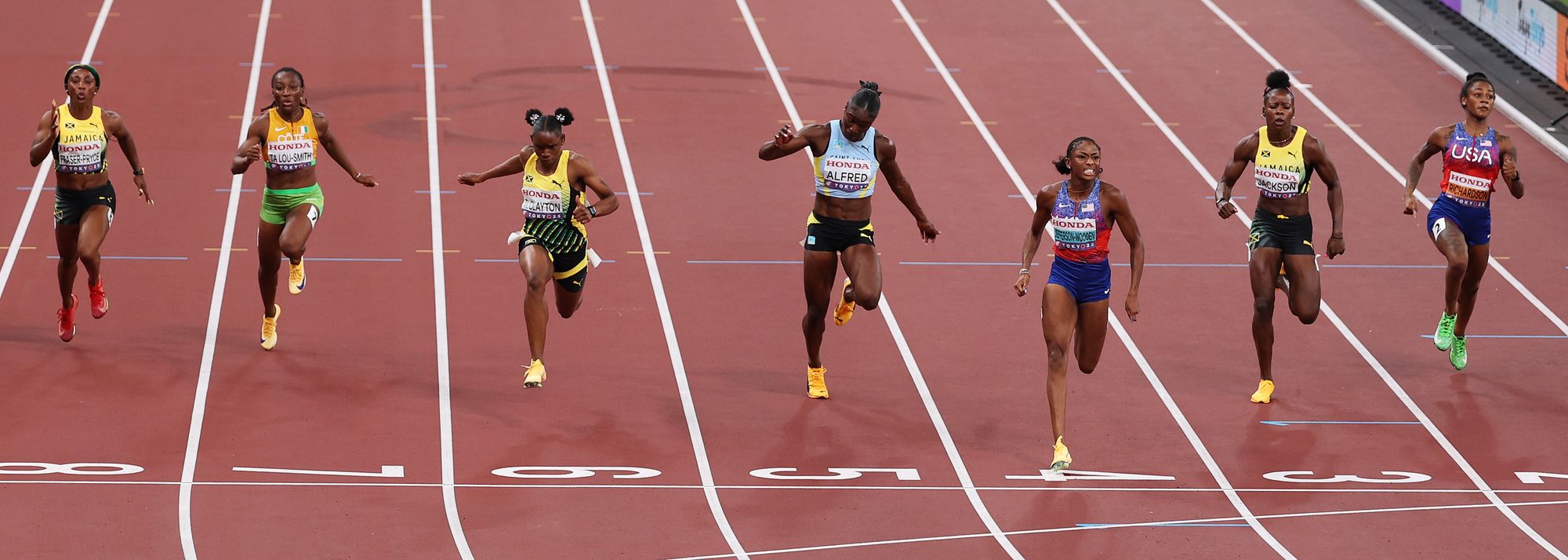 Result: 1 Melissa Jefferson-Wooden (USA) 10.61 CR, 2 Tina Clayton (JAM) 10.76, 3 Julien Alfred (LCA) 10.84.