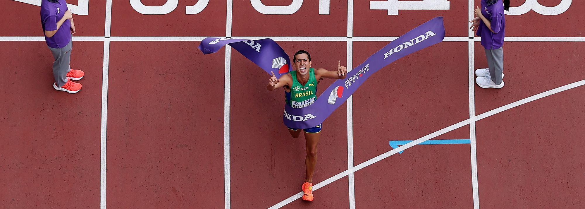 In crossing the finish line in 1:18:35 at the World Athletics Championships Tokyo 25 on Saturday (20), Brazil's Caio Bonfim claimed gold in the 20km race walk just a week after winning silver at the 35km distance.