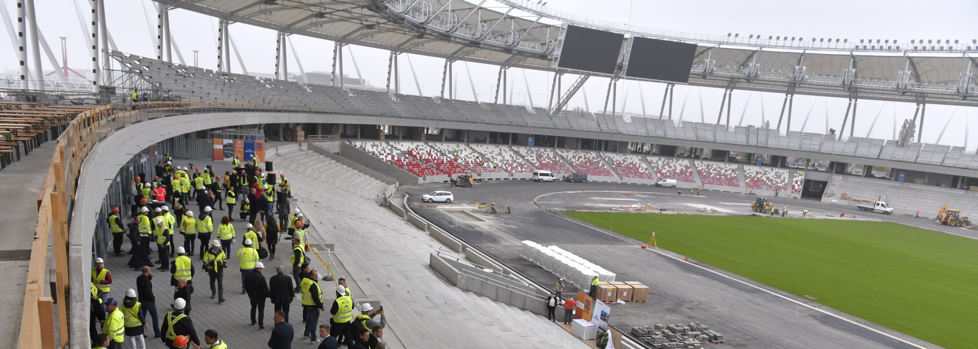 At the end of the ceremony, a wreath with the flags of the builders, contractors and investors was raised on the stadium's tensioned cable support structure.