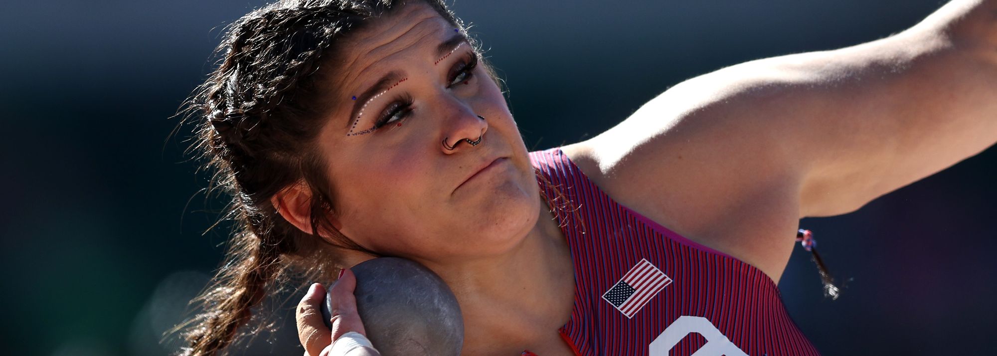 The 2022 World Indoor Championships shot put silver medallist is undefeated. She hit three personal bests in consecutive competitions in June and has the world leading distance this year after throwing 20.51m at the US national championships at Hayward Field just two weeks ago.