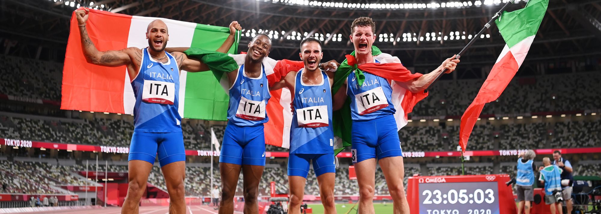 The triumphant Italian 4x100m team in Tokyo (© Getty Images)