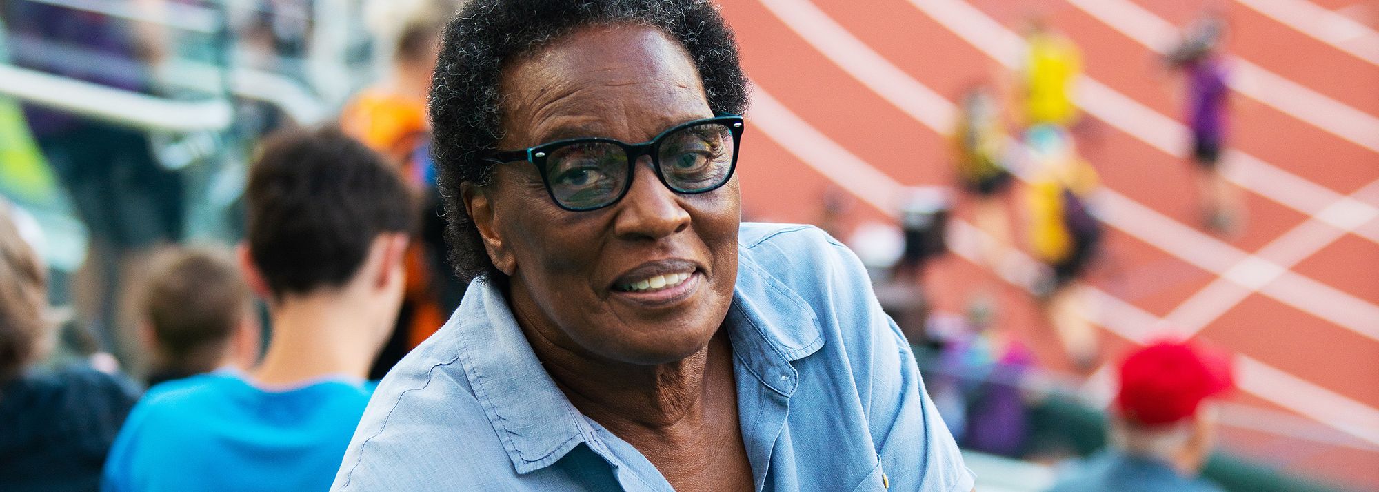 Wyomia Tyus in the stands at the World Athletics Championships Oregon22 (© Chloe Montague)