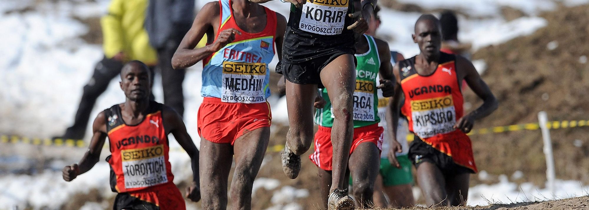 Japhet Kipyegon Korir leads the senior men's race at the 2013 IAAF World Cross Country Championships, Bydgoszcz, Poland on Sunday 24 March (© Getty Images)