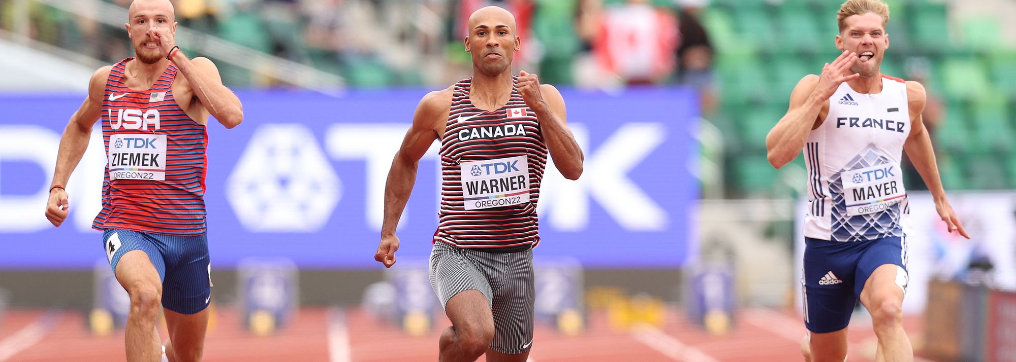 Damian Warner in the decathlon 100m at the World Athletics Championships Oregon22 (© Getty Images)