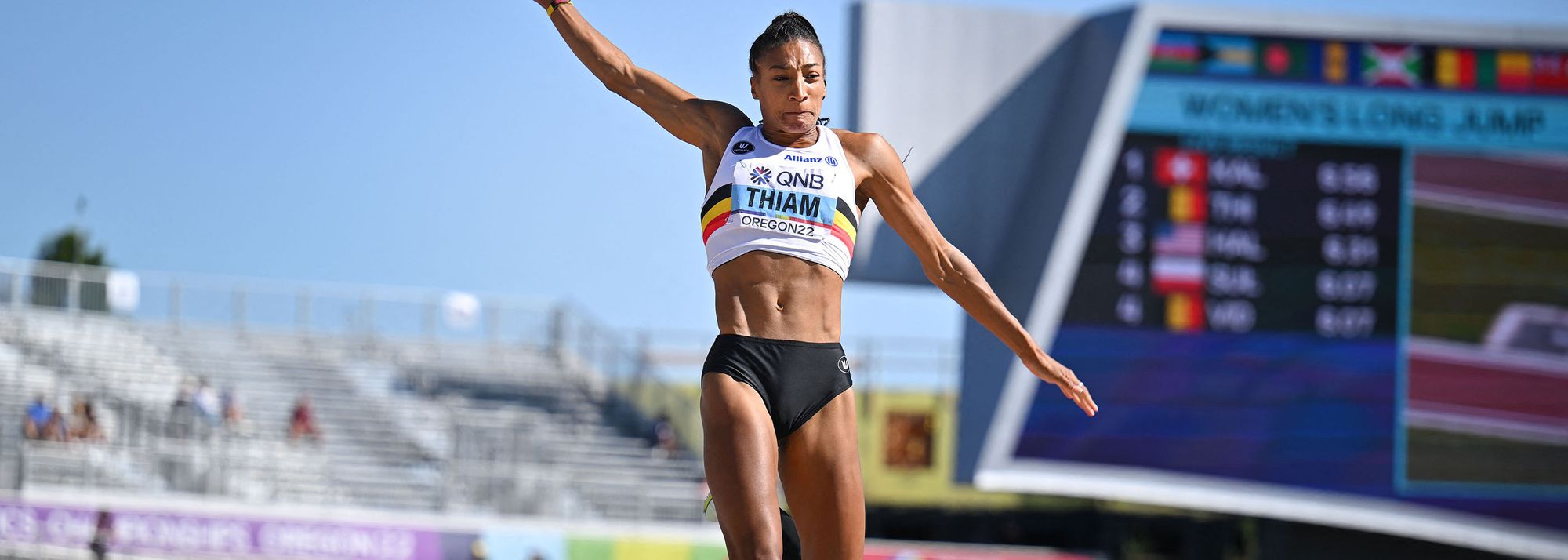 Nafissatou Thiam in the heptathlon long jump at the World Athletics Championships Oregon22 (Β© AFP / Getty Images)