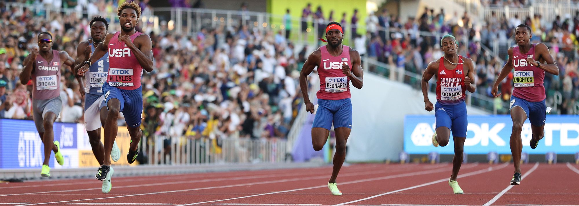 Lyles started in lane six, with Knighton in lane three and Bednarek in four. The race was almost over before it started, as Lyles seized control by the curve and gained further separation from the rest of the field down the straight.