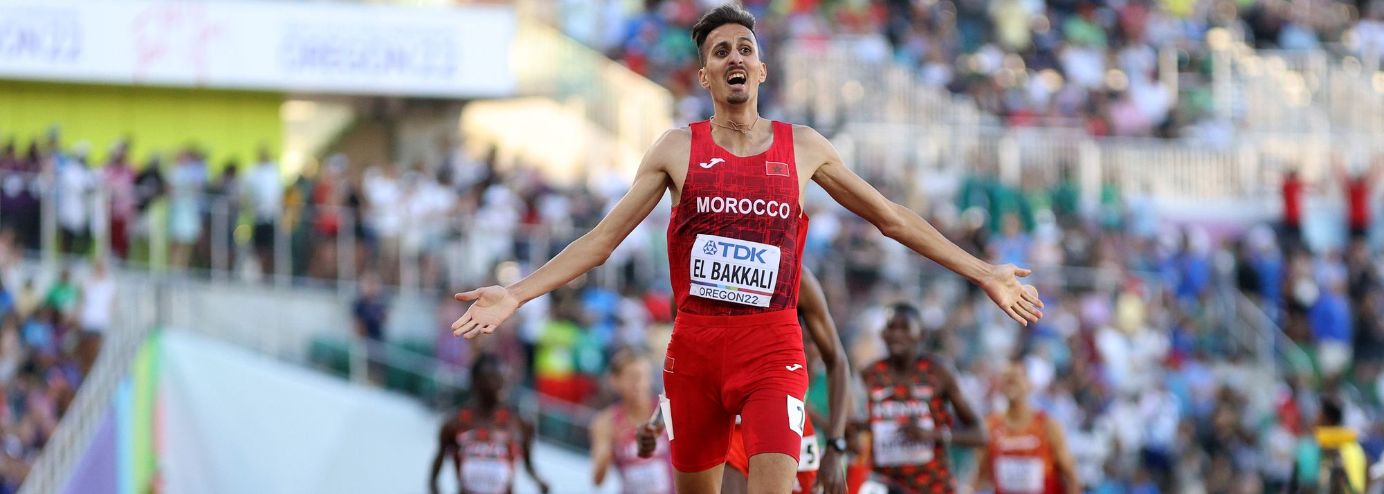 Soufiane El Bakkali wins the steeplechase at the World Athletics Championships Oregon22 (© Getty Images)