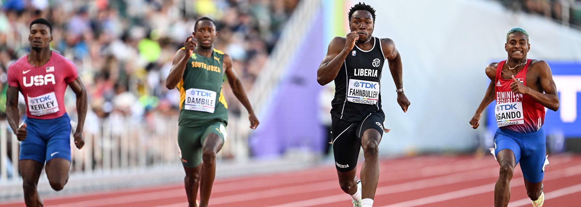 Liberia's Joseph Fahnbulleh in the 200m semifinals at the World Athletics Championships Oregon22 (© AFP / Getty Images)