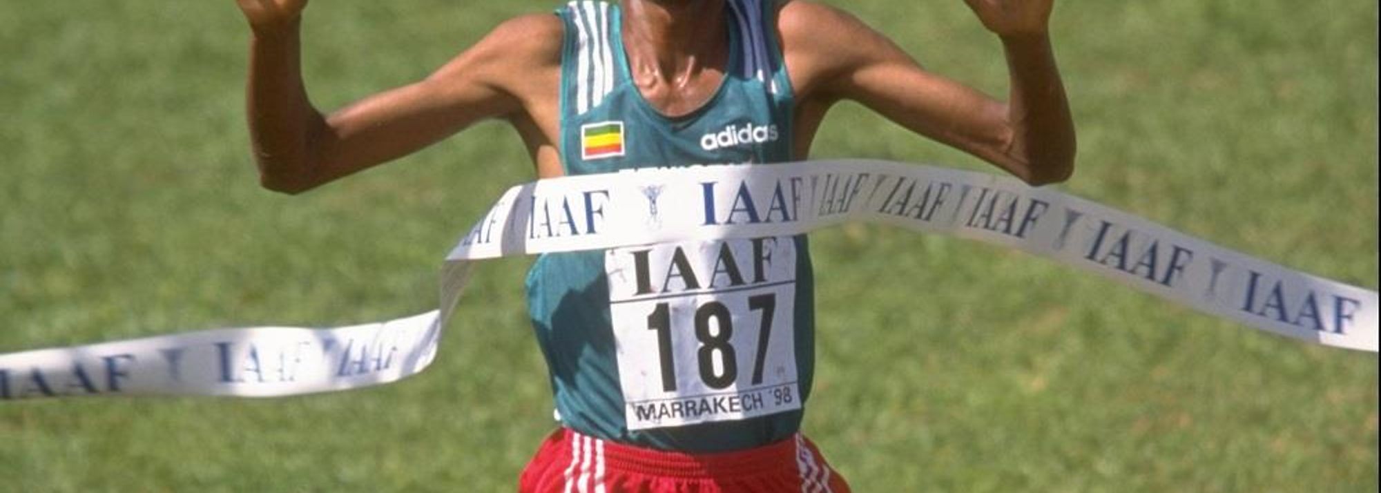 Million Wolde winning the junior men's title at the 1998 IAAF World Cross Country Championships (© Getty Images)